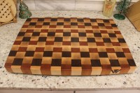 People love the checkerboard pattern in custom end grain cutting boards. I achieve this look by laminating strips of wood together like a large panel, and then cross cutting strips at the thickness of the final board. With the strips cut, they can be arranged with the end grain up and by flipped over every other one, the checkerboard pattern is created.