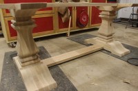 These were an exciting two weeks. There was a lot of woodworking that went into the table base. Most of my time was spent shaping the pedestals. With the column and upper arm completed, I finished the pedestals by shaping the feet and cutting the mortise underneath which receives the lower stretcher to create the trestle design.