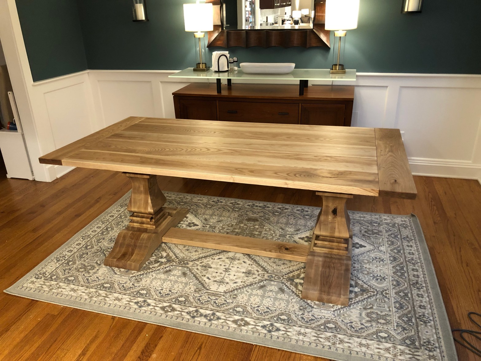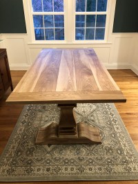 I’m thrilled at how this one turned out. This is the first farmhouse style commission I’ve taken and it was fun to branch out into a new style. From the breadboard top to the flowing curves on the pedestal and the aged finish, this table is classic and timeless. I’ve got a feeling others will be wanting one just like it!