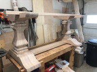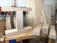 Other than that, this table is basically the same. The pedestal components are laminated 8/4 stock to create the foot, column and arm. These components are joined together with extra large mortise and tenons 1.5″ deep. After joining the parts, I shaped them using a router bit for the small facets and the bandsaw for the sweeping curves. After about a day of sanding, they were ready for glue up. Although it likely wasn’t needed, I also pinned the joints with 4 pegs driven perpendicular to the joint so it can never come apart.