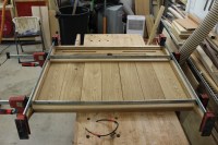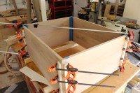 I began with the case, as all of the other components reference that. After milling down the stock, I created four edge glued panels paying attention to the grain at the seams to achieve a cohesive appearance. The panels received a miter joint reinforced with domino tenons. Next, I installed two stretchers to define the space for the pull out tray. These stretchers give me a reference point to mount the drawer hardware and a place for the cabinet door stops. These were installed with a sliding dovetail.