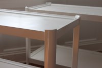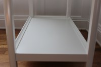 Today, I finished up the last client project for this year before focusing on a few Christmas gifts. These bistro style ends feature two levels for storage and repetitive rounded details that flow around the piece. The open shelf design and overall lightweight feel of the piece would work great next to any chair or sofa and will help keep the room feeling open and airy.