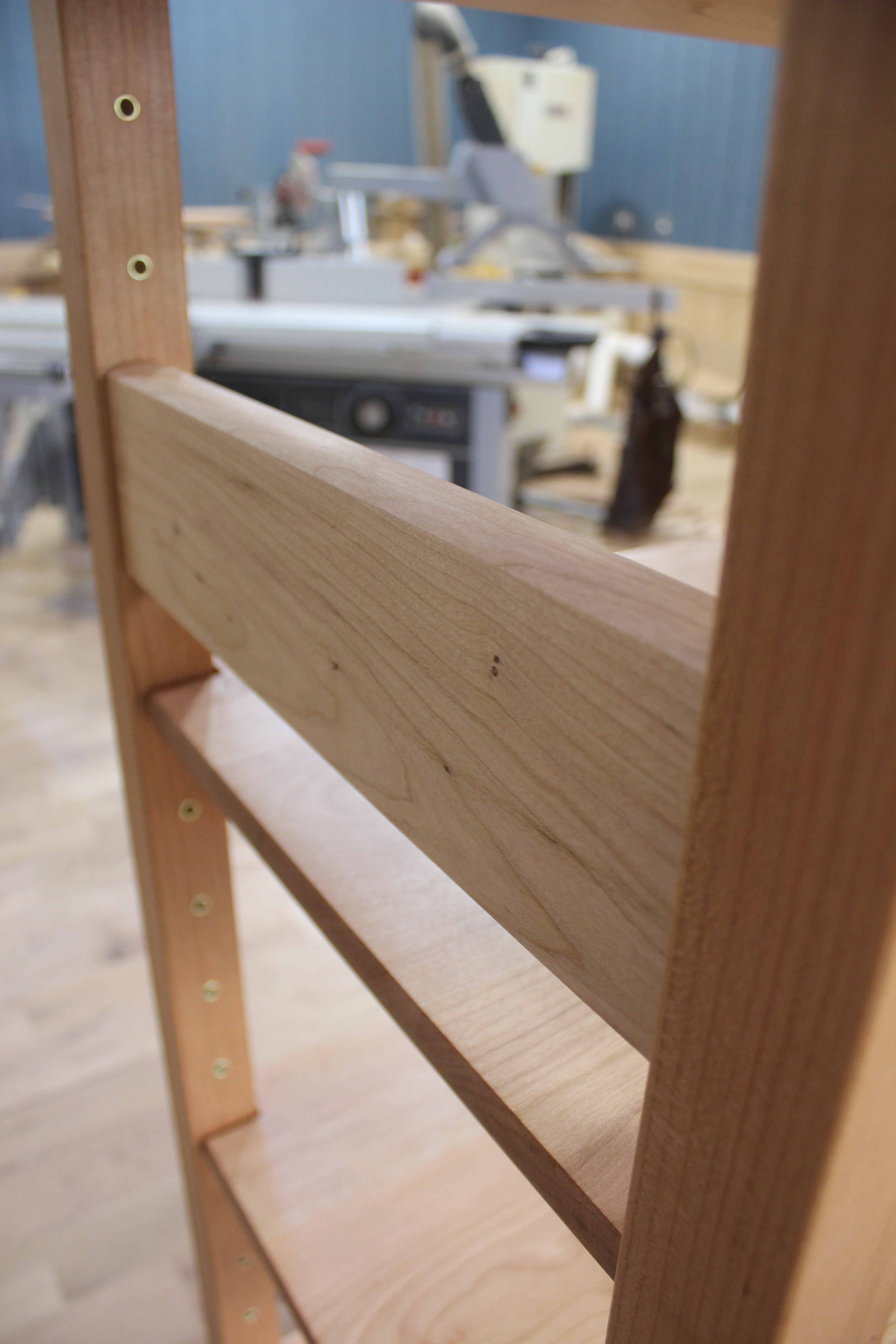 This Shaker inspired bookshelf is a recreation of this same shelf I made about a year ago. My client was looking for a quality shelf with a ton of storage, and this shelf fit the bill. Made of Cherry, warm red tones and flowing grain give this piece a ton of character and an authentic look; no stain here. Constructed with traditional mortise & tenons for strength. Finished with @osmo_usa hard wax oil to bring out the natural tones of the Cherry, and to provide a natural, close to the wood feel.