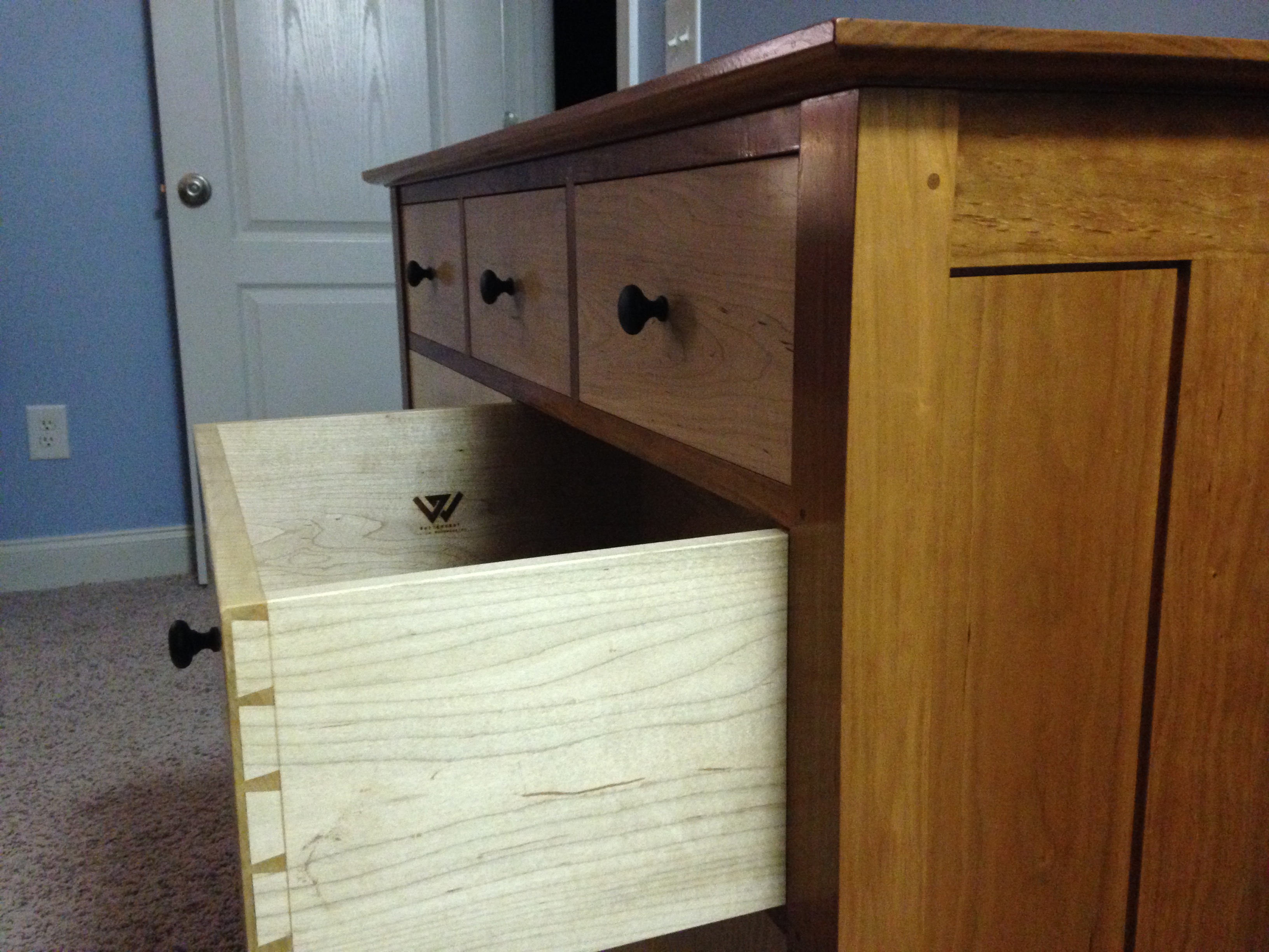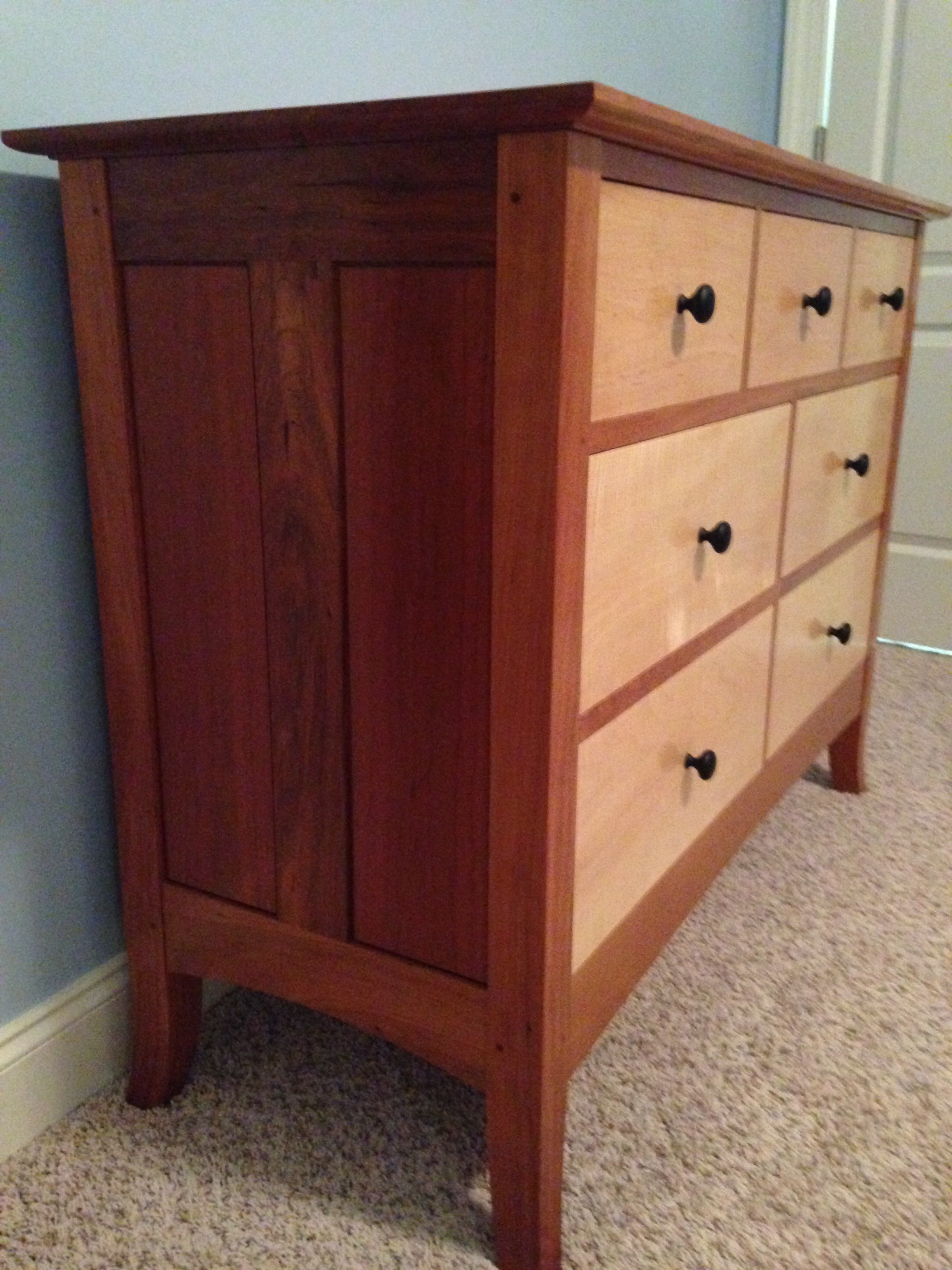 This 7 drawer dresser is inspired by shaker furniture. The overall design is simple with subtle details; a classic that will stand the test of time. It feature traditional joinery including mortise and tenon from the case frame, frame & panel ends and dovetails on the dividers and drawers. Great attention was given to the wood grain to achieve a uniform, pleasing look. The drawer bottoms are made of aromatic cedar for its light weight and smell.