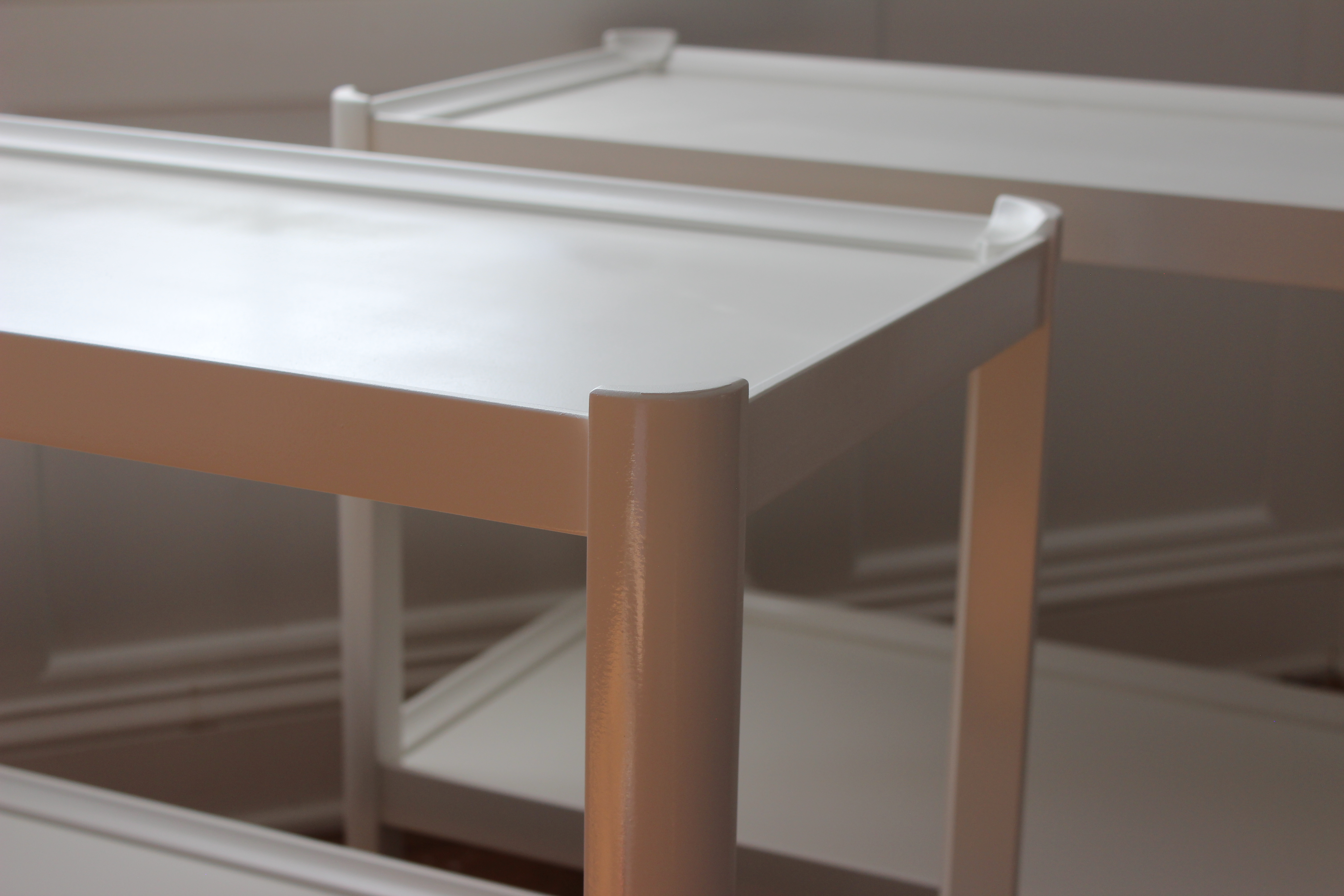 - These bistro style end tables feature complementing convex and concave profiles and an open air design giving them a light, European look