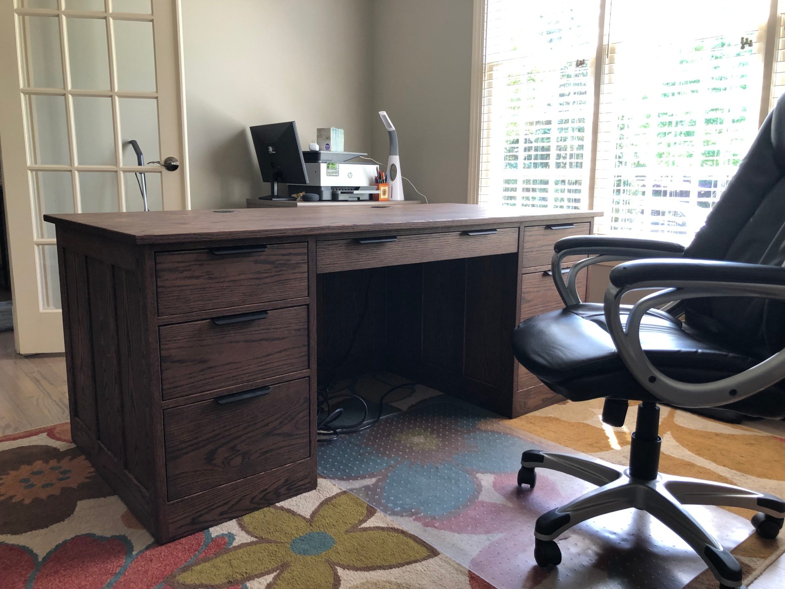 This past week I finished up an oak executive’s desk. I would probably call this mission style as it emphasizes solid craftsmanship and is without a lot of frills. The cabinets and privacy panel are basic frame and panels made with tongue and groove construction. The panels are flat, solid wood which I resawed onContinue reading “Executive’s Desk”