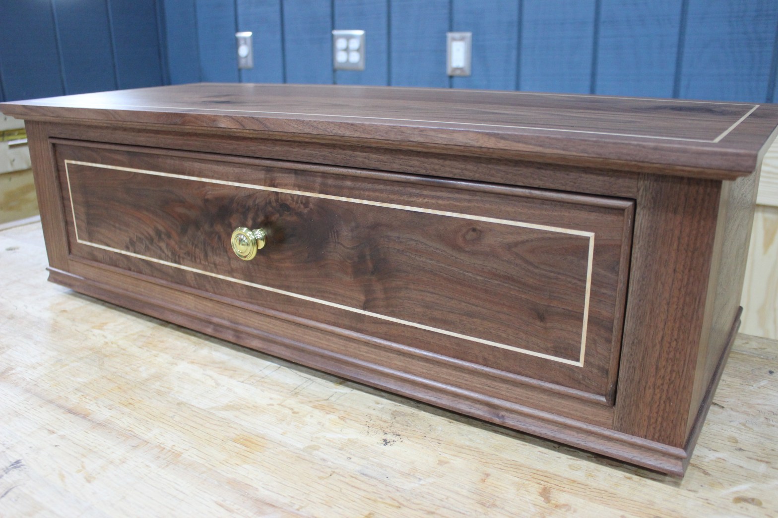 This federal style floating drawer adds beauty and functionality to your home office or library. Featuring a rich Walnut case accented with curly maple inlays and a polished brass knob, this floating shelf provides a sophisticated platform for displaying collectors items, books and more. The drawer is dovetailed for strength and beauty, and features aContinue reading “Federal Style Floating Shelf”